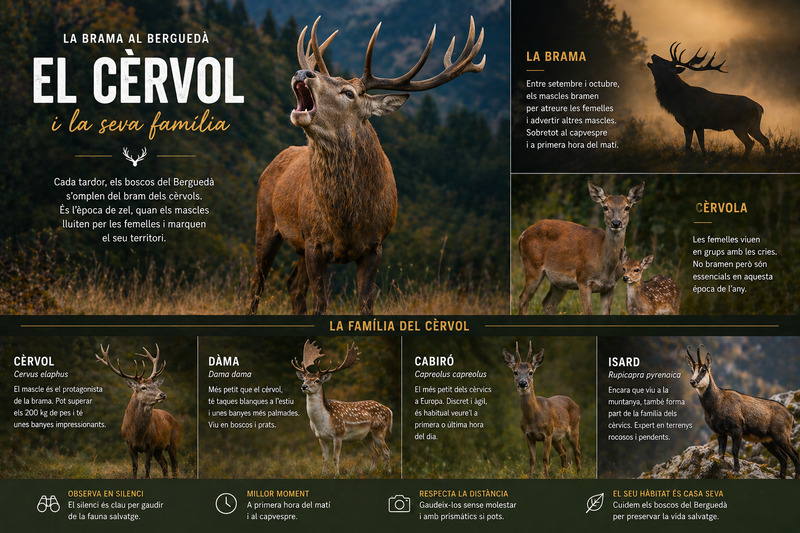Els mascles bramen per marcar territori, sobretot al capvespre i de nit. És una experiència única per als amants de la natura i la fotografia.