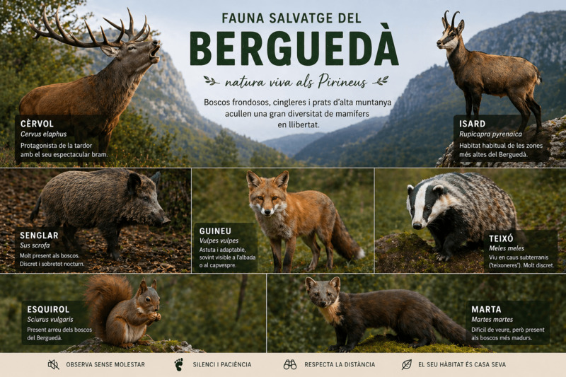Per observar fauna salvatge al Berguedà amb tranquil·litat, és clau allotjar-se en zones properes a la natura.
