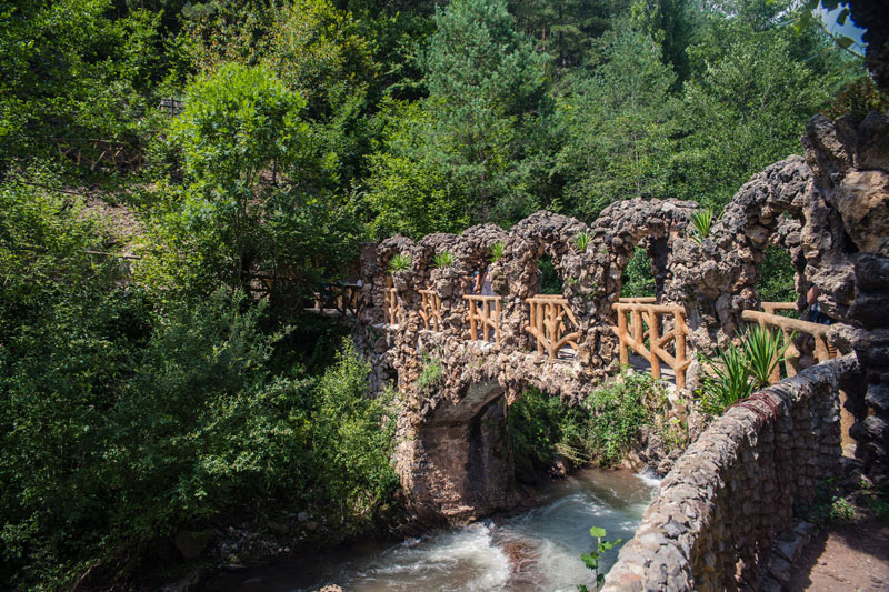 Bridges, grottoes, and viewpoints emerging from the mountain